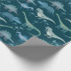 Beaucoup de dinosaures bleus sur un arrière - plan vert turquoise foncé. Tyrannosaurus Rex, Spinosaurus, Stegosaurus, Diplodocus et Tricératops. Parfait pour les paléontologues en herbe ! Art original de Nic Squirrell.