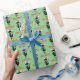 Enveloppement cadeau de vacances fantastique motif de l'orignal moderne illustré main avec chapeau santa, foulard et personnalisable Joyeux texte de Noël sur arrière - plan vert