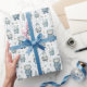 C'est le papier d'emballage cadeau parfait pour les cadeaux de Noël pour - ou de - vos enfants! L'ours en peluche bleu et marron d'hiver festif motif avec des feuilles et des ornements de Noël est moderne et mignon, et vos proches apprécieront sûrement la délicatesse de votre cadeau!