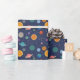 Un système solaire moderne et amusant motif avec des planètes colorées, des étoiles et des illustrations solaires contre un arrière - plan bleu foncé.
