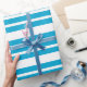 Le design est d'élégantes rayures horizontales aux couleurs bleu et blanc. Qu'il s'agisse d'un cadeau d'anniversaire, d'une célébration personnelle ou professionnelle spéciale, le papier d'emballage lumineux convient aux enfants comme aux adultes. Pour des questions ou des demandes spéciales, contactez l'artiste à l'adresse wafadahdalcreates@gmail.com. © Wafa Y. Dahdal - Tous droits réservés.