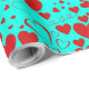 Papier Cadeau Motif en forme de coeur rouge en turquoise vide