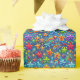 Un motif vif et fantaisiste rempli d'une variété d'étoiles dans différentes couleurs et styles. L'arrière - plan est d'un bleu foncé, rehaussant les couleurs vives des étoiles, dans des tons rouges, jaunes, verts, bleus et violets. Certaines étoiles sont minutieusement détaillées, tandis que d'autres ont un design plus simpliste ou abstrait. En plus des étoiles, il y a des tourbillons, des formes circulaires et des lignes fluides colorées qui créent un sentiment de mouvement et de dynamisme dans toute l'image. L'ensemble est ludique et énergique, évoquant un sentiment d'émerveillement et d'imagination.