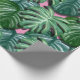 Papier enveloppant réalisé avec une image de grands feuilles tropicaux verdoyants et feuillus avec une pointe de rose derrière. Peint avec des acryliques et numérisé.