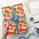 Collage festif de carrés, chacun avec un design unique sur le thème des vacances. La palette de couleurs comprend principalement les tons rouge, vert, crème et or.