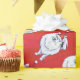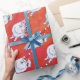 Papier Cadeau Motif Festive White PomPom Chien sur Red