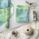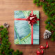 Aquarelle feuille de banane de jungle papier d'emballage dans les accents de vert et de bleu.