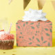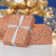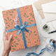Le papier cadeau présente un motif moderne de feuilles de bois taupe sur fond saumon