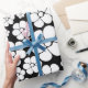 Papier Cadeau Motif Fleur rétro en blanc sur noir