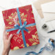 Papier d'emballage motif floral asiatique oriental de lotus chinois rouge. Beau papier cadeau de motif asiatique rouge et or. Parfait pour le Nouvel An chinois ou toute autre occasion de donner un cadeau.