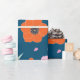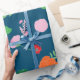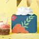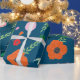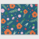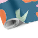 Papier d'emballage cadeau motif floral bleu avec des couleurs vives. Unique, élégant et moderne. Présentant mes illustrations florales et feuillages. Roses, Pavots, feuilles, pétales en orange, rose, verts, rouges.