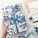 Papier Cadeau motif floral bleu poussiéreux