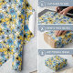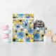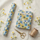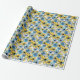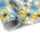 Papier Cadeau Motif floral rétro jouable, bleu doux et jaune