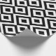 Faites ressortir vos cadeaux grâce à un enveloppement cadeau moderne doté d'un motif géométrique noir et blanc audacieux. Les diamants noirs aux bordures blanches sont entourés de méandres noirs qui les entourent. Les zigzags blancs assurent une séparation subtile entre les chemins sinueux. Parfait pour les soirées à thème noir et blanc et autres occasions. numériquement créé une image. Copyright ©Claire E. Skinner. Tous droits réservés.