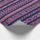 Papier Cadeau Motif Géométrique Tribal Bleu Et Corail Rouge