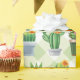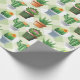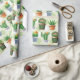 Houseplant succulents sur un arrière - plan en vichy vert, Aloe vera, Prickly Pear cactus, Golden Barrel cactus et Aeonium.