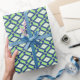 Papier Cadeau Motif Ikat - Vert, Indigo Bleu et Blanc