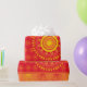 Dentelle indienne décoration ornementale avec éléphant et formes rondes décoration sur arrière - plan rouge