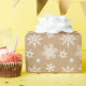 Ce papier d'emballage de Noël a un mélange de formes de flocs de neige blancs contre un arrière - plan de papier Kraft. Ce design moderne fait partie d'un mix n'match set pour coordonner un Noël parfait. Pour en savoir plus, consultez ID589.
