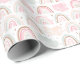 motif arc-en-ciel blanc et rose vielle avec nuages et gouttes de pluie. Parfait pour l'emballage cadeau d'anniversaire de baby shower ou d'enfant.