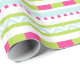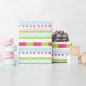 Motif rayé, coloré et girly, où l'on aperçoit également un peu de chevron et des pointillés. Ce design est en vert, blanc, bleu menthe et rose chaud.