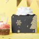 Ajoutez une touche d'élégance lorsque vous enveloppez les cadeaux de cette période de fêtes en utilisant ce papier d'emballage moderne et sophistiqué de Noël. Ce design présente un arrière - plan noir avec de beaux arbres de Noël qui ont des étoiles sur le dessus. Les flocons de neige et les confettis fleuris complètent ce enveloppement cadeau de Noël.