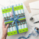 Papier Cadeau Motif moderne vert, bleu, Brown rayures & points