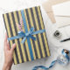 Papier Cadeau Motif noir de rayures de feuille d'or
