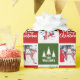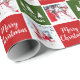 Papier d'emballage personnalisé vert, rouge et blanc "Joyeux Noël" avec le nom de famille, 2 photos personnalisées, et un motif d'arbre. Super pour envelopper vos cadeaux de Noël cet hiver et la saison des Fêtes.