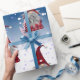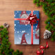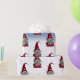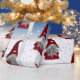 Cute Buffalo plaid gnome sur arrière - plan bleu et blanc avec neige