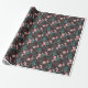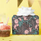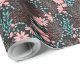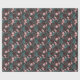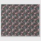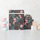 Papier enveloppant avec un élégant motif fait de fleurs roses, de feuilles turquoises et de baies rouges sur un arrière - plan sombre.