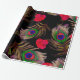 Motif sans couture décorative avec de beaux roses aquarelles et plumes paon. Empreinte florale romantique.
