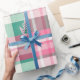 Papier Cadeau Motif Tartan Plaid Rose Et Mint Vert