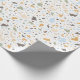 Motif en terrazzo coloré sur arrière - plan blanc. On dirait que des puces de granit et de quartz sont imprimées. Illustration de pierres d'arêtes nettes.