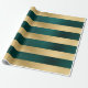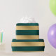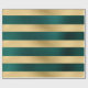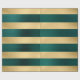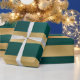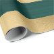 Un design élégant et moderne de papier cadeau de Noël enveloppant avec un motif large bande alternant vert turquoise foncé et une texture numérique en or faux métallique.