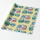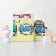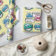 Ce papier d'emballage cadeau personnalisé présente un thème de bande dessinée coloré sur fond jaune. Les mots et les phrases d'action des bandes dessinées populaires tels que "Oh, Snap!" "OMG!" "BOOM!" et "WOW!" sont placés autour des bords dans des bulles de dialogue. Un exemple de message "Joyeux Anniversaire" est imprimé à l'intérieur d'une zone de texte suivie d'un nom d'exemple. Vous pouvez personnaliser le papier d'emballage pour inclure votre propre nom personnalisé ou autre texte. Un autre message est imprimé dans une zone de texte sur le côté. C'est parfait pour une douche de mariée, une fête d'anniversaire ou une autre célébration excitante.