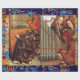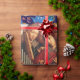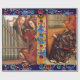 Peinture à l'huile du peintre flamand Jan van Eyck, Le Retable de Gand : Angels Jouer de la musique et de l'annonce Angel -1426-27.Design de Noël élégant, classique, lumineux et joyeux sur parchemin avec motifs florentins anciens et un saphir bleu 3D brillant et pierres de rubis rouges.