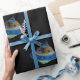 Vaisseau bleu avec papier d'emballage arrière - plan noir