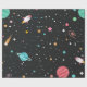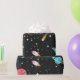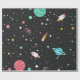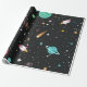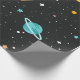Planètes d'astronomie, comètes et étoiles en noir avec des fusées