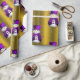 Un joli papier d'emballage de Noël en or coloré avec un motif de petits bonhomme de neige habillé de chapeaux et de gilets en velours violet, entouré d'étoiles d'or, pour donner à votre cadeau enveloppant cette saison de vacances une touche fantaisiste et élégante.