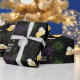 New Year Eve Party Wrapping Pape Patterned With Balloons, Fireworks and Script On Black Paper.
