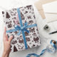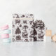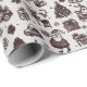 Un papier d'emballage sur le thème de Noël mignon et sépia avec un motif fait de Santa Clause, boîtes cadeaux, rennes, et illustrations d'arbres de Noël. Un bon choix pour envelopper vos cadeaux de Noël !