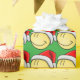 Ce design de papier d'emballage avec une grande caricature portant un grand sourire et un chapeau de Père Noël rouge sur une couleur arrière - plan changeante est sûr de plaire et de plaisir!Utilisez cette image ou ajoutez la vôtre !