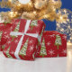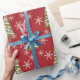 Enveloppez vos cadeaux de vacances avec ce papier d'emballage saisonnier avec des flocons de neige et un arbre de Noël sur arrière - plan rouge. Vos cadeaux auront l'air très joyeux sous l'arbre.