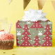 Enveloppez vos cadeaux de vacances avec ce papier d'emballage saisonnier avec un arbre de Noël rouge, des boîtes cadeaux de Noël et de la neige sur un arrière - plan vert. Vos cadeaux auront l'air très joyeux sous l'arbre.
