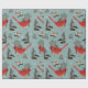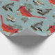 Papier Cadeau Noël Bird Cardinal Nuthatch Chickadee Turquoise