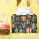 De charmants cactus et des cadeaux à travers le papier d'emballage de Noël du Sud-Ouest sur le thème sombre.