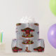 Un joli papier d'emballage de Noël imaginaire avec un carrousel vintage, avec des chevaux de carrousel peints et dansants. On y trouve également des arrosages d'étoiles rouges sur une base métallique en dégradé argenté pour un look festif. Ce joli dessin de carnaval rétro d'un carrousel musical sur l'argent aura l'air très bien assis sous l'arbre pour Noël.