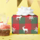 Buffle rouge et vert Plaid avec rennes blancs et silhouettes en cristal de neige.
