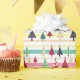 Papier d'emballage moderne, rétro, coloré rose et bleu de Noël avec un motif de pin pop-art unique mignon.